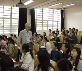 毕业于哈佛大学、并获哈佛大学经济学博士学位的John Mahr 教授介绍了在西方社会影响较为深远的一些诗人及其诗歌,这些诗歌内容丰富,体裁多样。John Mahr 教授以其诙谐幽默,深入浅出的讲课方式,精练的语言配以丰富的动作表情,不时引来同学们的阵阵掌声和笑声,讲座现场气氛融洽热烈,台上台下交流频繁,2个小时的讲座就这样在不经意中结束。随后,同学们意犹未尽,就诗歌的研究方式等问题与John Mahr教授进行了交流,在交流中,同学们还发现John Mahr教授非常关心在哈佛学习的中国学生,十分赞赏中国学生刻苦学习、勤奋向上的优良品质。