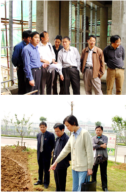 近日,张长宽校长和陈德奎副书记到江宁校区检查工作,校长助理、管委会主任吴朝国和副主任金华陪同校领导到图书馆施工现场了解工程进度情况,图书馆副馆长杨晓宁和符晓陵汇报了图书馆后期装修打算。张校长要求一定要本着节约的原则,精心细算,最大程度地利用好现有资源,为全校师生提供良好的服务。此前,徐辉副校长来校区就四期家具、设备采购工作及绿化工作召开现场工作会,金华副主任汇报了工作进展情况及存在的问题,随后,徐校长在校长助理、管委会主任吴朝国等的陪同下到绿化现场了解了草皮及草花种植规划等方面的情况。