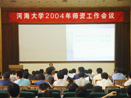 5月27日下午,河海大学2004年师资工作会议在科学会堂隆重召开。会议由鞠平副校长主持。会上郑书记代表校党委做了关于《贯彻全国人才工作会议精神 开创我校人才工作新局面》的报告,明确了党管人才的原则和措施;土木工程学院、环境科学与工程学院、计算机及信息工程学院、理学院、常州校区机电学院分别就学科梯队建设、师资规划、引进人才、青年教师培养等进行了经验交流;最后,张长宽校长以《大力加强师资队伍建设 切实推进“人才强校”战略》为题作总结报告,报告分别从我校的师资队伍现状、存在的问题、建设的指导思想和主要目标、建设措施等几方面对我校师资工作做了系统的总结。
