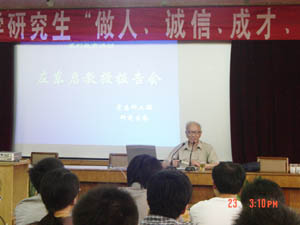 “我们目前的学术研究缺少了批判,多了奉承,没有批判便没有进步……”在6月23日下午3点的“河海大学研究生做人-诚信-成才报告会”上,受邀请做报告的河海大学老校长、八十高龄的左启东教授率真直言。这位早年毕业于上海交通大学,曾留学苏联莫斯科水利工程学院获技术科学副博士的河海大学前校长,以一个普通朋友的身份与在座的研究生进行了坦诚交流。