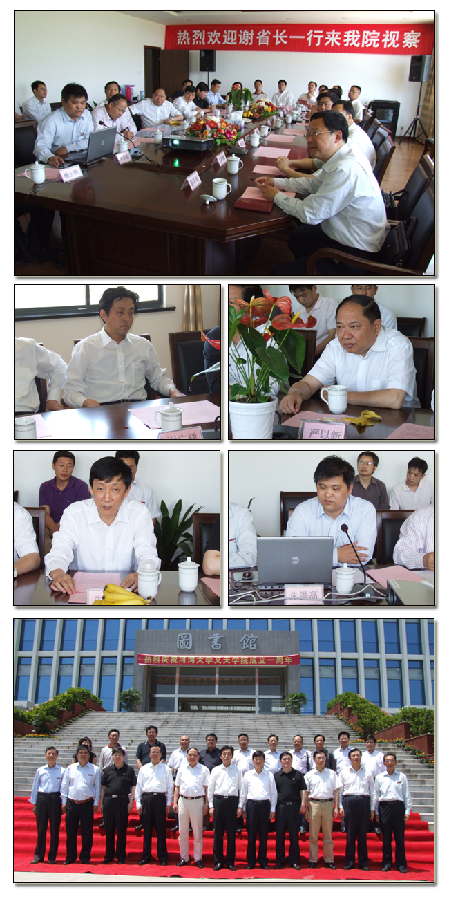 谢广祥副省长在听取汇报后指出,河海大学文天学院开创了安徽省与外省高校合办独立学院的先例,充分体现出安徽省和马鞍山市开放合作办校的姿态和加快发展教育的决心与信心。他希望文天学院不断扩大办学规模,发挥传统专业的优势,注重培养应用型技术人才,将学院办成一所立足安徽、面向长三角、辐射全国的高等院校。