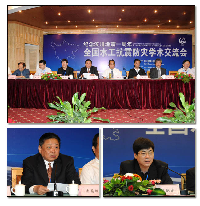 5月12日,“纪念汶川地震一周年,全国水工抗震防灾学术交流会”在成都召开。本次会议由中国水力发电工程学会、中国长江三峡工程开发总公司、河海大学和中国水电顾问集团成都勘测设计研究院主办,具体由挂靠在河海大学的中国水力发电工程学会抗震防灾专业委员会负责承办。开会前全体代表首先对在地震中遇难的同胞默哀一分钟。会议开幕式由中国水力发电工程学会秘书长李菊根主持,我校副校长朱跃龙出席会议并致辞。这一天,不仅是汶川地震一周年纪念日,也是中国第一个“防灾减灾日”。本次会议的目的在于组织来自全国的地震和水电专家学者对社会各界极为关心的水坝、水电站在地震中的安全问题,进行专门的学术交流讨论,盘点中国水电在地震中的表现,总结水坝、水电抗击特大地震的经验。