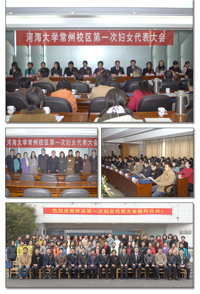 我校常州校区第一次妇女代表大会于12月28日隆重召开。校区党委书记李乃富、校区管委会主任周建方、党委副书记王建青、管委会副主任彭雷,常州市妇联副主席陈凤珍、常州市妇联组联部部长陈丽文,校区党委职能部门、各总支、直属支部书记出席了会议。为了加强校区的妇女工作,根据《中华全国妇女联合会章程》及常州市妇联有关文件规定,校区决定成立妇女委员会。会上,常州市妇联领导对校区的工作及校区领导对本次会议的重视给予了高度的评价,李乃富书记也对校区妇委会提出了具体而明确的要求。大会通过了《河海大学常州校区妇女委员会工作条例》,选举产生了吕红征、江冰、纪玲妹、吴震岱、杨志明、高洪娟、廖华丽七人组成的河海大学常州校区第一届妇女委员会。
