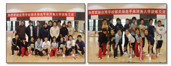 随着健美操运动的发展以及在全世界的普及,健美操作为我校一项特色运动项目,取得了一系列国际国内比赛佳绩,校健美操运动在国际国内范围的影响也越来越大。为进一步加强海峡两岸学校体育文化交流 ,中华台北体操协会、文化大学、台北市立体育学院及南胡高中、私立治平高中健美操选手慕名我校健美操运动水平在国际国内的影响以及师资力量、裁判水平、场地设施等情况,在校领导的关心和国际合作处港澳台办以及体育系的支持下,台湾学校健美操队于日前来我校进行异地训练和交流学习。台湾学校健美操队是近年来崛起的亚洲劲旅,拥有多名高水平的选手,本次来我校训练交流的共有1名教练员、3名男队员和3名女队员。训练和交流学习期间,我校给予了台湾健美操选手技术上的实质帮助,他们与我校选手同场训练,切磋技艺,互相提高,还观摩了全国健美操冠军赛,达到了训练和交流学习的目的。相信今后随着交流的逐步加强,必将促进健美操运动的发展和技术水平的提高。