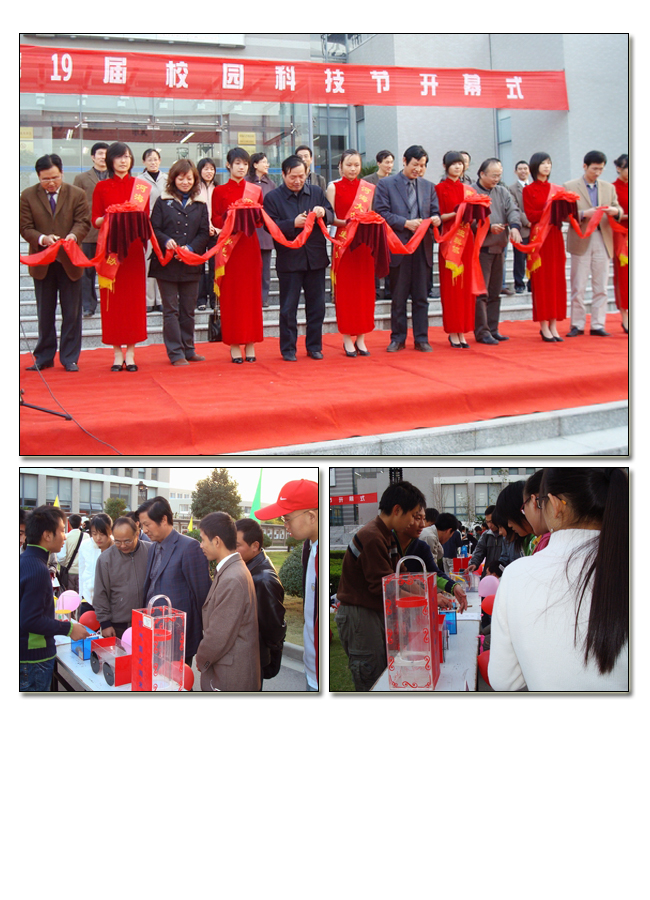 校团委副书记刘兴平向千余名师生代表介绍了本次科技节的活动情况。校党委副书记郑大俊致辞。郑书记对本次校园科技节予以了充分肯定,对组织本次科技节的老师及同学表达了良好的祝愿,并鼓励广大同学积极参与课外学术科技活动。最后在欢快的乐声中,郑大俊副书记、张勤主任、缪子梅处长、王如高副部长等领导为本届科技节开幕式剪彩,标志着本届科技节正式开幕。