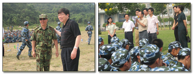 13日,南京军区舟桥旅邓志兵政委叮嘱新生一定要爱惜身体、注意安全,并要在军训中注重培养国防观念、团队意识、吃苦精神和自理能力。尤其是未来从事道路、水利等工程建设的学生,更需要与国防观念相结合。