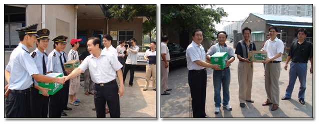 在学生工作部和学生社区,校区领导详细了解了暑期留校学生和学生住宿安排等有关情况,对留守岗位积极做好暑期学生工作和为新学期开学正在做准备工作的工作人员进行了慰问。在后勤服务集团,校区领导深入到食堂、物业管理部、驾培中心等部门检查和慰问,对他们为师生所提供的优质服务表示感谢,并叮嘱有关部门负责人,既要维持校区正常工作运转,做好假期各方面的工作,又要注意防暑降温,调整好工作节奏,保证身体健康。在疏浚实验室,校区领导认真听取了实验室负责人倪福生教授关于实验室建设情况的汇报,并希望进一步做好实验室的相关工作,迎接“疏浚技术”教育部工程研究中心专家现场论证会的召开。在保卫科慰问时,校区领导要求保卫工作人员在做好防暑降温工作的情况下,坚守岗位,加强校园安全管理,确保师生员工度过一个安全愉快的暑假。在基建工地,校区领导对在高温下为新学期的开学工作提供保障而辛勤工作的施工人员表示敬意,并嘱咐工地管理者要关心施工人员的身体,准备好必要的防暑降温用品,做到安全文明施工,确保工程保质保量按时完成。