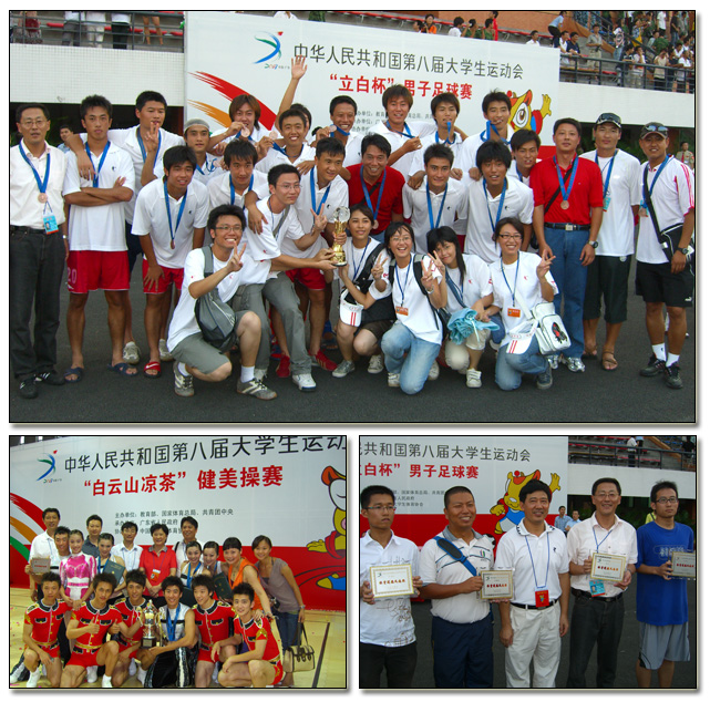历时10天的中华人民共和国第八届大学生运动会日前在广州大学城落下帷幕。河海大学代表团及男子足球队和健美操队肩负江苏百万师生和河海大学师生员工的重托出征,经过全团上下的共同努力和运动员的顽强拼搏,全面实现既定目标,出色完成任务,赢得了运动成绩和精神文明双丰收:男子足球队在八天六轮紧张赛程中,顶着近40度的高温,先后战胜新疆、陕西、山西、四川等队,最终获得第三名,并获“体育道德风尚奖”;健美操队在没有空调、得不到充分休息的艰苦住宿条件下,奋勇拼搏,获得团体总分第二名以及三人操、大众徒手操第三名,并获“体育道德风尚奖”;学校代表团获“校长杯”团体总分183分,排名全国22名,为江苏省获得总分第三做出了贡献。