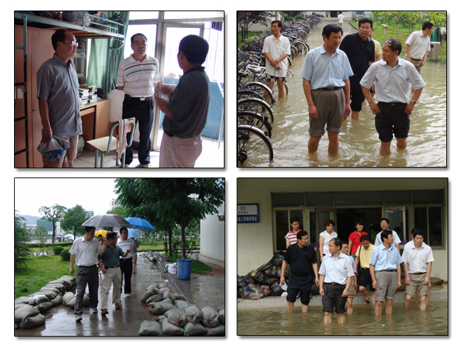 对此,我校积极采取措施,有效控制灾情,确保学生安全,保证学生生活、学习正常、有序进行。安全方面,学校及时将一楼部分进水的宿舍学生,就地转移,调至高楼层就住;严格控制校外食品进入校内贩卖;提前做好水退后的卫生防疫准备工作等。生活、学习方面,对因积水较高而不能正常到食堂就餐的同学,学校餐厅公布了用餐电话,及时将饭送到有需要的学生宿舍,并及时开辟临时通道,便于学生就餐与上课等;此外,各院系均安排专人在校区值班,随时解决同学们遇到的困难和问题。