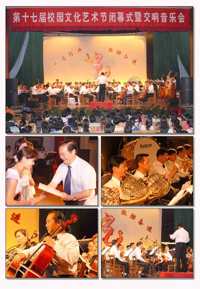 6月10日,河海大学常州校区举行“感受经典、激励奋进――文化艺术节闭幕式暨交响音乐会”。校区领导和有关部门、教学院部负责人出席了闭幕式并与师生共同欣赏了音乐会。闭幕式以精彩的服装表演拉开帷幕。我校常州校区党委书记李乃富、管委会主任周建方分别为获得“宝钢优秀学生奖”、“江苏省三好学生”、“江苏省优秀学生干部”、“江苏省先进班集体”、“2006-2007学年‘十佳班集体’”的集体和个人颁奖。党委副书记王建青致闭幕词并宣布文化艺术节胜利闭幕。