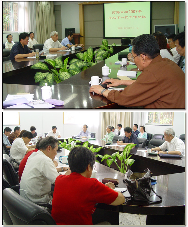 5月31日,我校关心下一代工作委员会召开了工作会议。校党委副书记、关工委副主任陈德奎出席会议并讲话,校关工委全体委员以及各学院、直属单位党委和关工委负责人参加了会议。会议由校关工委副主任林劲松同志主持。会上,校关工委秘书长黄和平同志传达了教育部、江苏省及省教育系统关工委有关文件及会议精神。与会同志对如何深入开展关工委工作发表了意见。校关工委副主任林劲松作了关工委2006年工作回顾并布置了2007年河海大学关工委的重点工作,希望各级关工委从点滴小事做起,找准切入点,积极开展调研和探索,把关心下一代工作做实、做好;通过大家的努力,把我校关工委工作推向新水平,取得新的成效。