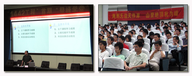 据悉,河海大学“1442工程”是我校人才培养模式的创新举措,从1997年至今,已经先后培养了2000名骨干学员。根据“1442工程”成员的发展需要,经研究决定,每学期举办一期“登峰学堂”,每期5讲,并作为“1442工程”的主干课程。“登峰学堂”主要邀请校内外知名专家学者、企业家、优秀校友等走上讲台,为“1442工程”等学生骨干做关于科学技术、社会经济、时事政治、管理法规、文学艺术、成长成才等方面的报告。旨在通过“登峰学堂”这个平台, 让“1442工程” 成员学习攀登高峰的本领、感受攀登高峰时的艰辛、体验或分享登上高峰时的愉悦,从而激发他们“学习理论、学会做人、学会吃苦、学会创造”的“四学”热情,激发他们自我实现的潜能。
