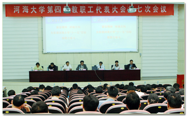 2006年5月21日,河海大学第四届教职工代表大会第七次会议圆满完成了大会预定的各项议程,胜利闭幕。在正式会议召开之前,大会文件已下发至各位代表,要求各代表团组织代表对大会文件进行讨论、审议和修改。各位代表仔细审阅讨论大会文件,进行认真、广泛、深入讨论。他们对大会文件内容给予充分肯定,同时也提出了一些中肯的意见和合理化建议。大家还紧紧围绕会议主题,就学校改革与发展中的大事、难事、急事,实事求是地进行分析,畅所欲言,提出了许多富有建设性的意见和解决策略。