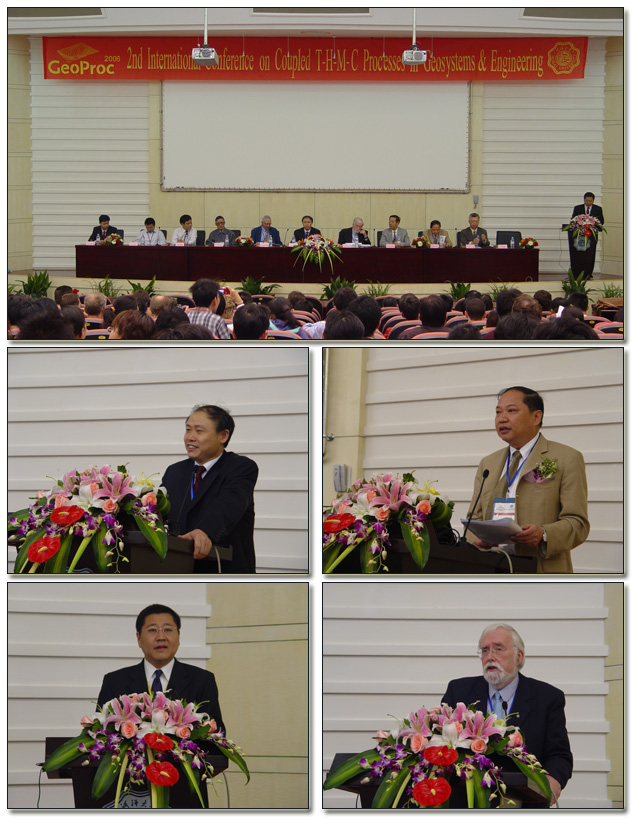 5月22日上午,第二届国际应力-水流-热-化学(THMC)耦合学术大会GeoProc2006(The 2nd International Conference on Coupled T-H-M-C Processes in Geo-systems & Engineering)在河海大学隆重开幕,来自全球20多个国家的200余名专家学者与会,这是继2003年在瑞典Stockholm瑞典皇家工学院举行的首届THMC耦合国际会议后的又一次学术盛会。校长助理、研究生院常务副院长,大会主席徐卫亚主持开幕式。河海大学校长、研究生院院长张长宽代表学校致欢迎辞,副校长、大会组委会主席严以新致开幕辞,国际岩石力学学会当选主席、英国伦敦大学帝国学院教授J A Hudson发表了讲话。吴中如院士、王思敬院士出席了开幕式。