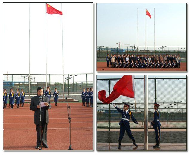 旗帜是方向,旗帜是动力。每一次国旗的升起,我们的灵魂都会受到一次洗礼,心灵都会受到一次震撼。4月30日清晨,校人武部在江宁校区组织举行庆“五一”升挂国旗仪式。出席升旗仪式的有学校党委副书记郑大俊教授,江宁校区党工委、学生工作部、人武部、团委等相关部门的负责人、各学院总支副书记和辅导员。江宁校区2004级、2005级全体同学参加了升旗仪式。郑大俊副书记作了重要讲话。郑大俊副书记在讲话中指出,这次升挂国旗仪式,旨在进一步落实胡锦涛总书记社会主义荣辱观的教育,深入开展爱国主义教育;旨在纪念五一国际劳动节,深入开展热爱劳动教育。劳动是中华民族的传统美德。从大禹治水到三峡工程,勤劳智慧的中华儿女用辛勤的劳动,创造了璀璨的华夏文明。河海学子要牢记自己的使命,树立“以辛勤劳动为荣,以好逸恶劳为耻”,知荣明耻、扬荣弃耻、兴荣除耻,在学海中勤奋学习,将来用丰富的智慧和勤劳的双手为祖国、为社会作出贡献!