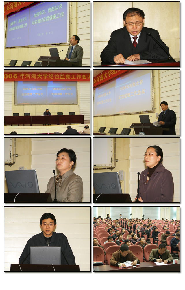 纪委陈德奎书记传达了上级有关会议精神并作工作报告。他首先传达了全国教育纪检监察工作会议和江苏省纪委第八次全体会议的精神,然后总结了我校2005年纪检监察工作取得的成效,同时分析了工作中还存在的问题,并对2006年的纪检监察工作作了部署。
