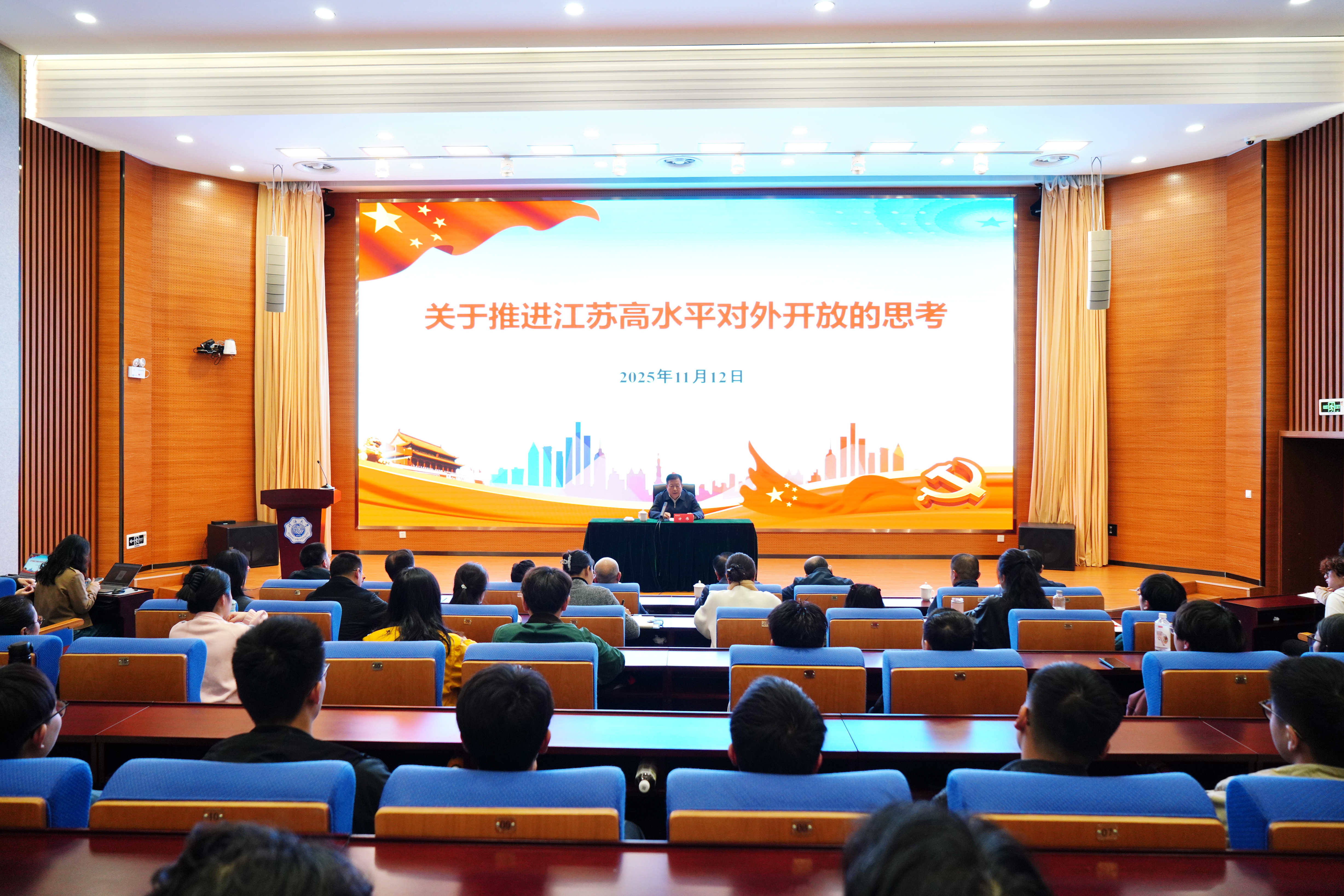 11月12日,江苏省政协副主席方伟走进河海大学,围绕贯彻落实党的二十届四中全会精神、推进江苏高水平对外开放,为师生讲授思政课。