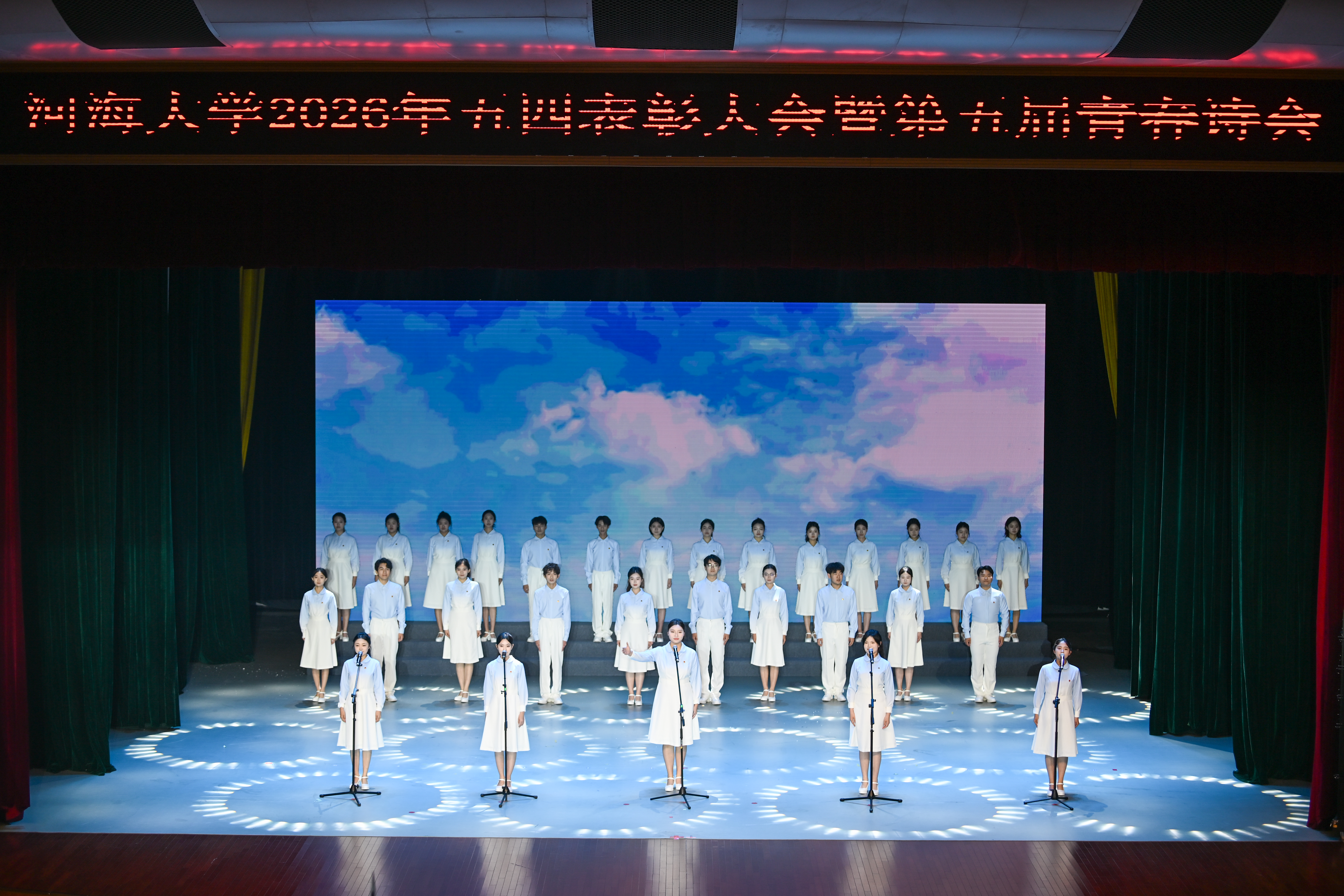 青春诗会通过音乐剧《青春的世界》、情景音诗画《为了新中国》、群诵《青春的誓言》、合唱《光荣啊,中国共青团》等上演了一堂生动的思政大课,激励广大河海青年在强国建设、民族复兴的新征程上贡献青春力量。