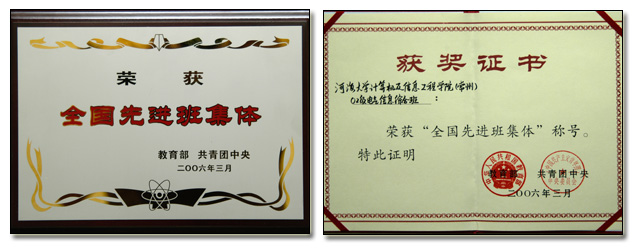 日前,在教育部、共青团中央开展的第八次“全国三好学生”、“全国优秀学生干部”和“全国先进班集体”评选表彰活动中,河海大学计算机及信息工程学院(常州)02级电气信息综合班被教育部、共青团中央授予“全国先进班集体”荣誉称号。此次评选表彰活动中,共有来自全国各高校的194个班集体被评为“全国先进班集体”, 江苏省高校共有12个班集体获此殊荣。全国三好学生、优秀学生干部、先进班集体,是教育部、团中央授予高等院校学生的最高荣誉,这次受到表彰的集体和个人是全国广大青年学生和班集体的优秀代表,集中体现了当代青年学生积极、健康、向上的精神风貌。